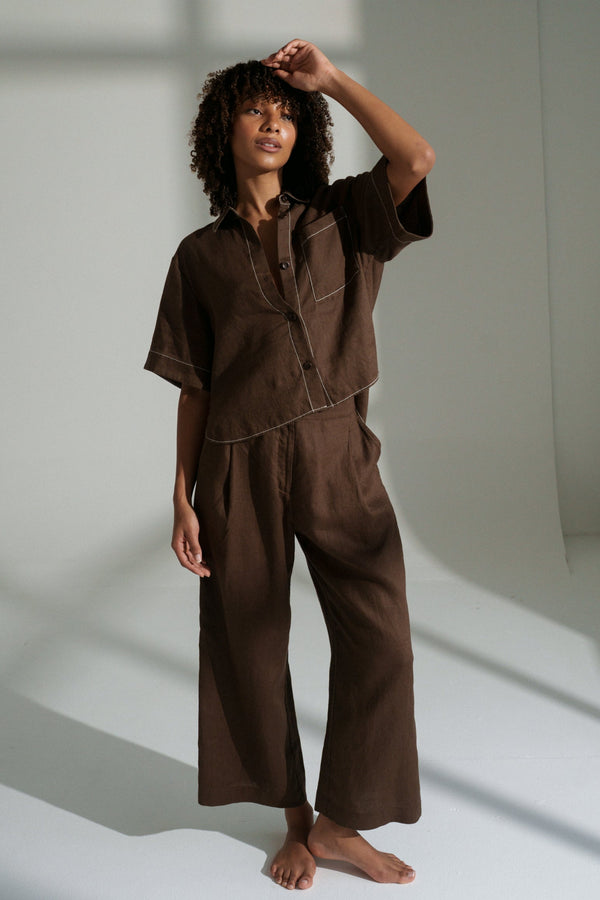 Unleash your inner fashion maven with our RIKA linen pants - crafted from the finest 100% EUROPEAN FLAX® linen. These pants feature a straight wide leg, crop length, and convenient side and back pockets. For a touch of whimsy, we've added a cotton lace insert on the side seams and a front zipper. The elastic back waistband ensures a comfortable fit, and French seams provide a polished finish.