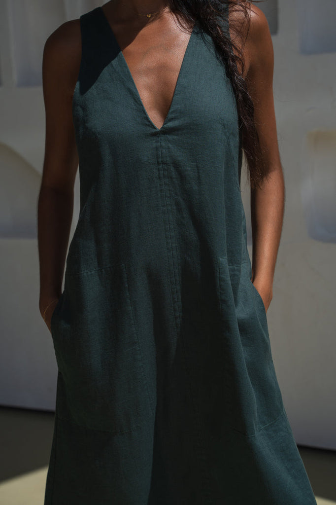Effortless style meets everyday comfort in the IRIS Linen Dress. Crafted from 100% EUROPEAN FLAX® certified linen, this A-line midi dress features a flattering V neckline and seam pockets detailed with crisp top stitching. The elasticated back neckline ensures a comfy fit, while the subtle back hem slit adds just the right amount of flow. IRIS is bra-friendly, curvy-bust friendly, and petite-friendly - a versatile piece to dress up or down this Spring & Summer.