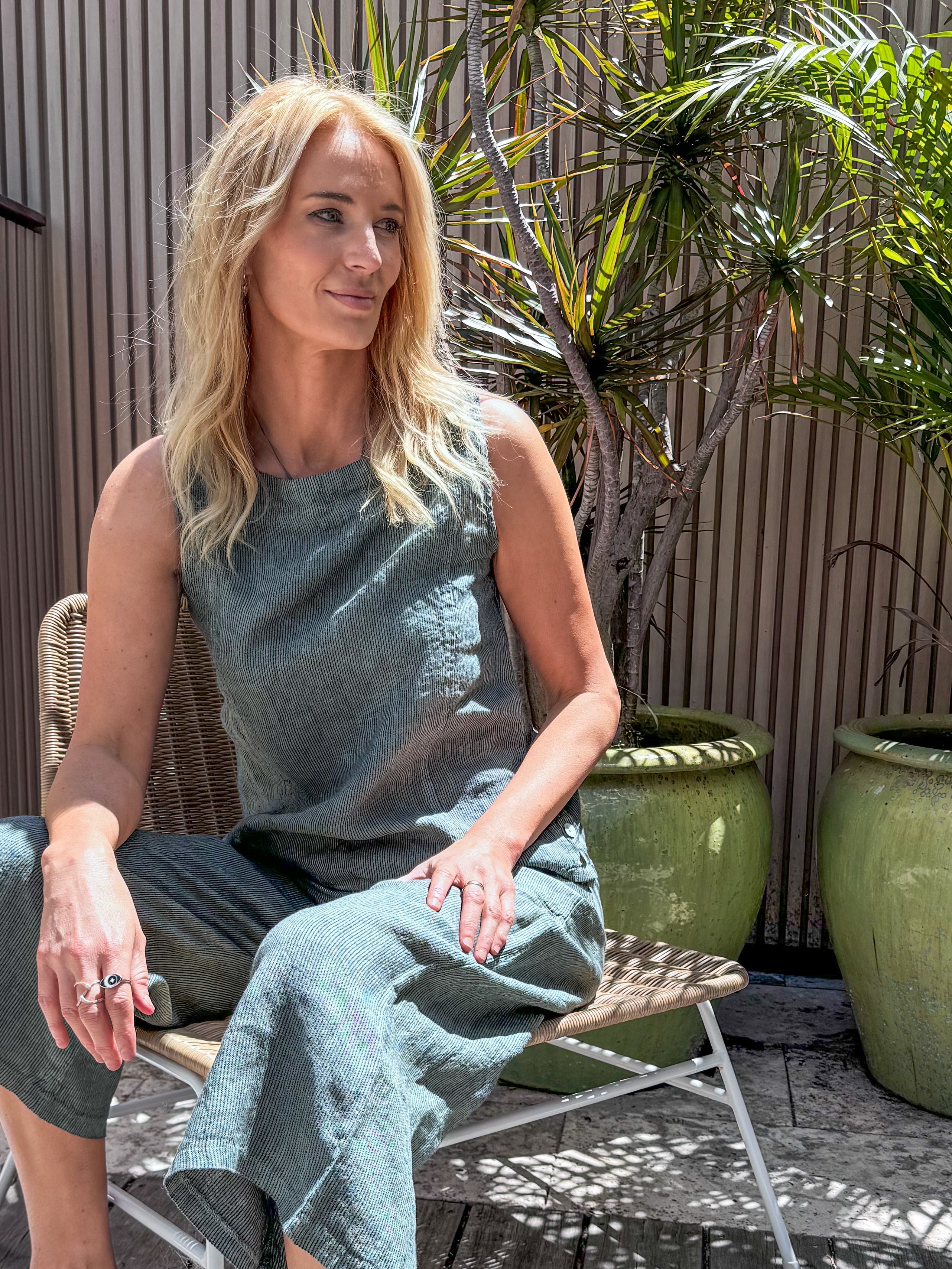 Maxine Linen Top - Metal and Charcoal Stripe